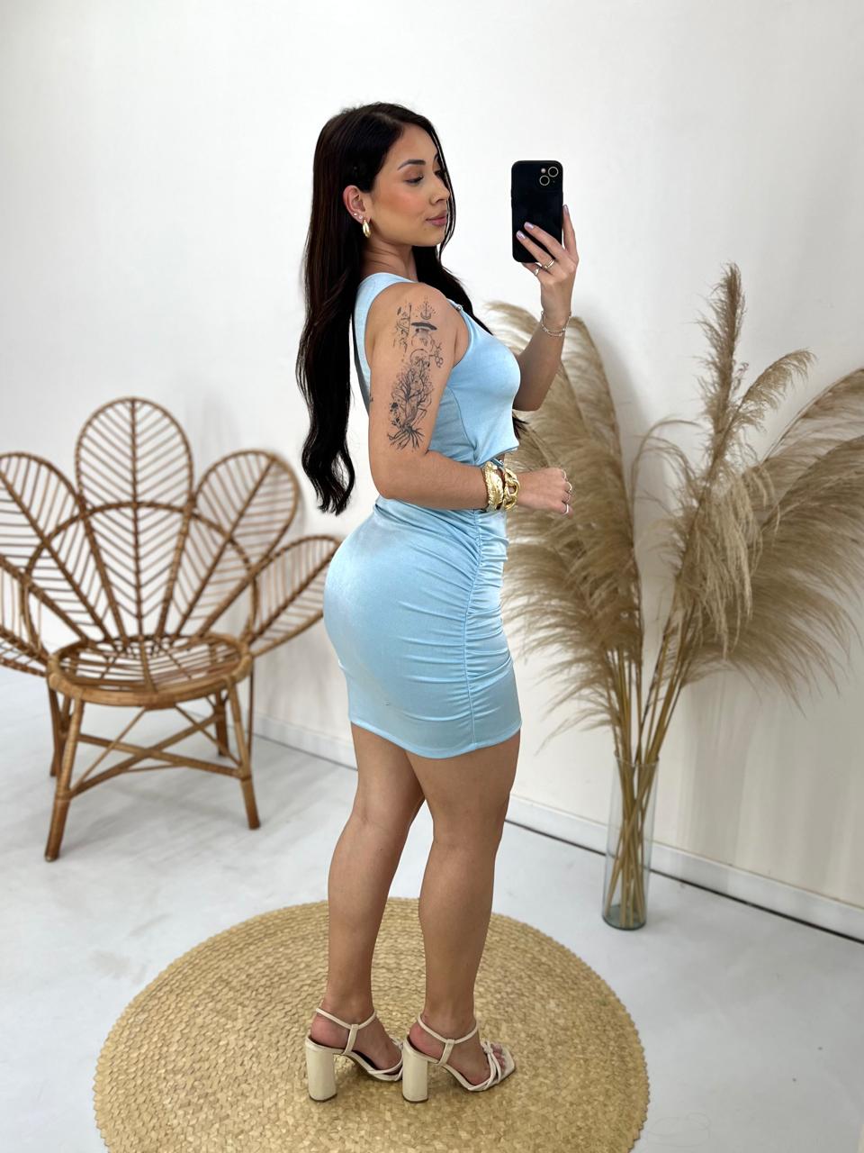 Vestido Festa Acetinado Azul